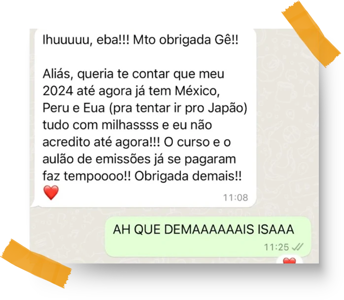 O meu intuito e maior objetivo é que você comece a juntar milhas ainda hoje e emita sua primeira passagem de graça em pouquíssimo tempo! Eu estudo diariamente para entregar o MELHOR E MAIS TRANSFORMADOR MÉTODO para vocês!